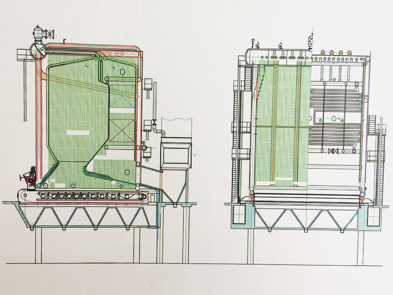 2、蛇形管對流受熱面由縱向排列改為橫向排列,減少了彎頭數量,提高了對流受熱面的可靠性,同時減化了安裝環節。